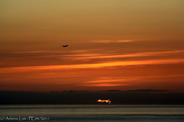 Todos os dias úteis, um Boeing 737-300 da Agroar demanda aqui a ilha. Chega pelo nascer do sol e, de quando em vez, decide introduzir-se na monumental "pintura" do amanhecer.
