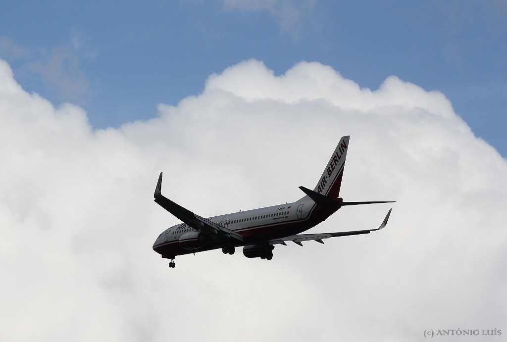 Outro quase escapando, elegante, resistindo à dificuldade da luz - Boeing 738/Air Berlim